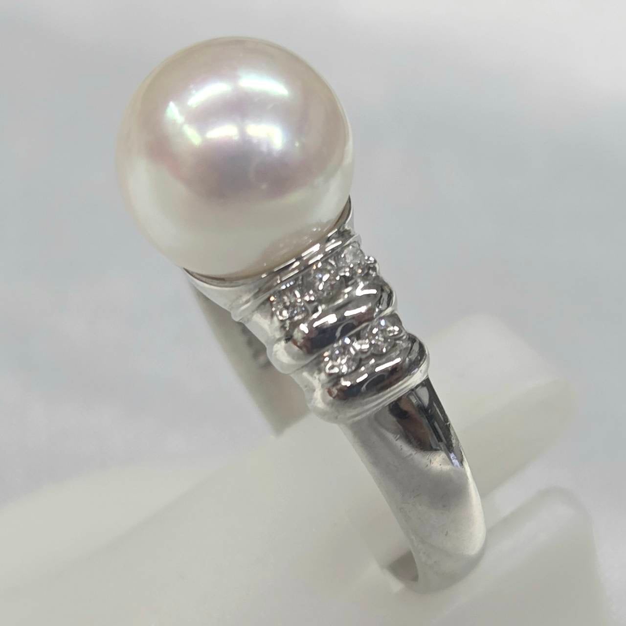 Pt900アコヤパールリング 9.2mm 0.12ct 11号