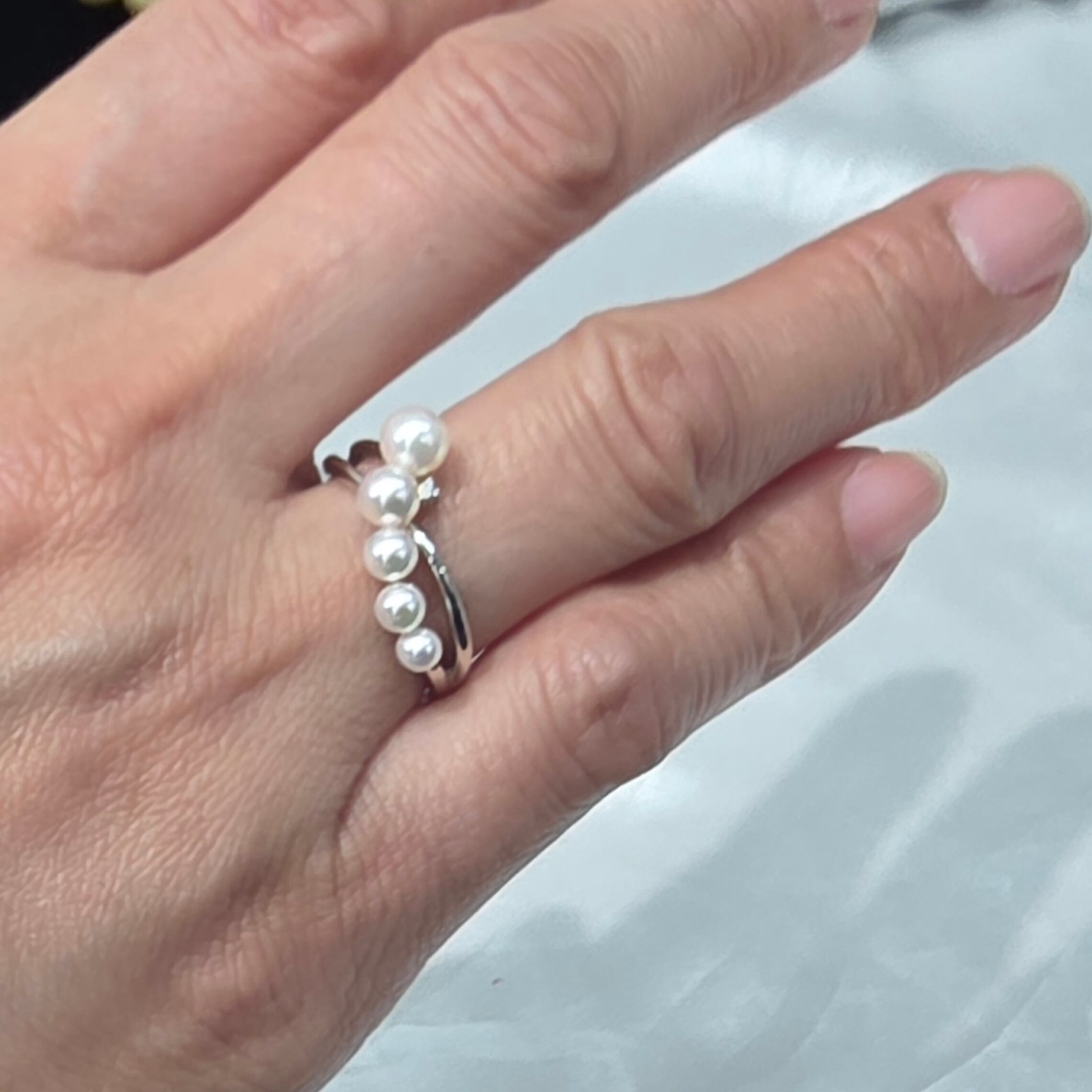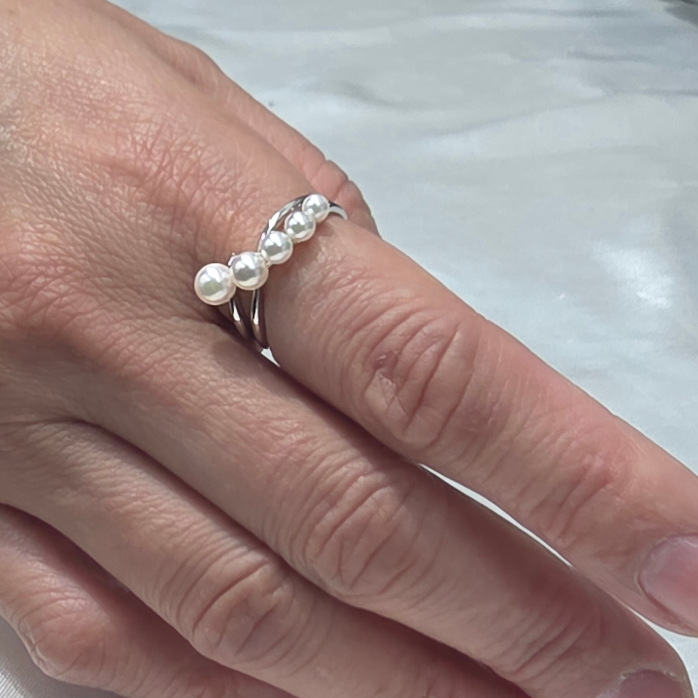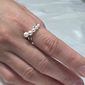 美しい干渉色が魅力の3-4.5mmのアコヤパールを使用した、グラデーションデザインのファッションリングです。5つのアコヤパールが並び、華やかな印象を与えつつ、上品さも兼ね備えています。このリングを身に着けて、日常から特別なシーンまで幅広くお楽しみください!