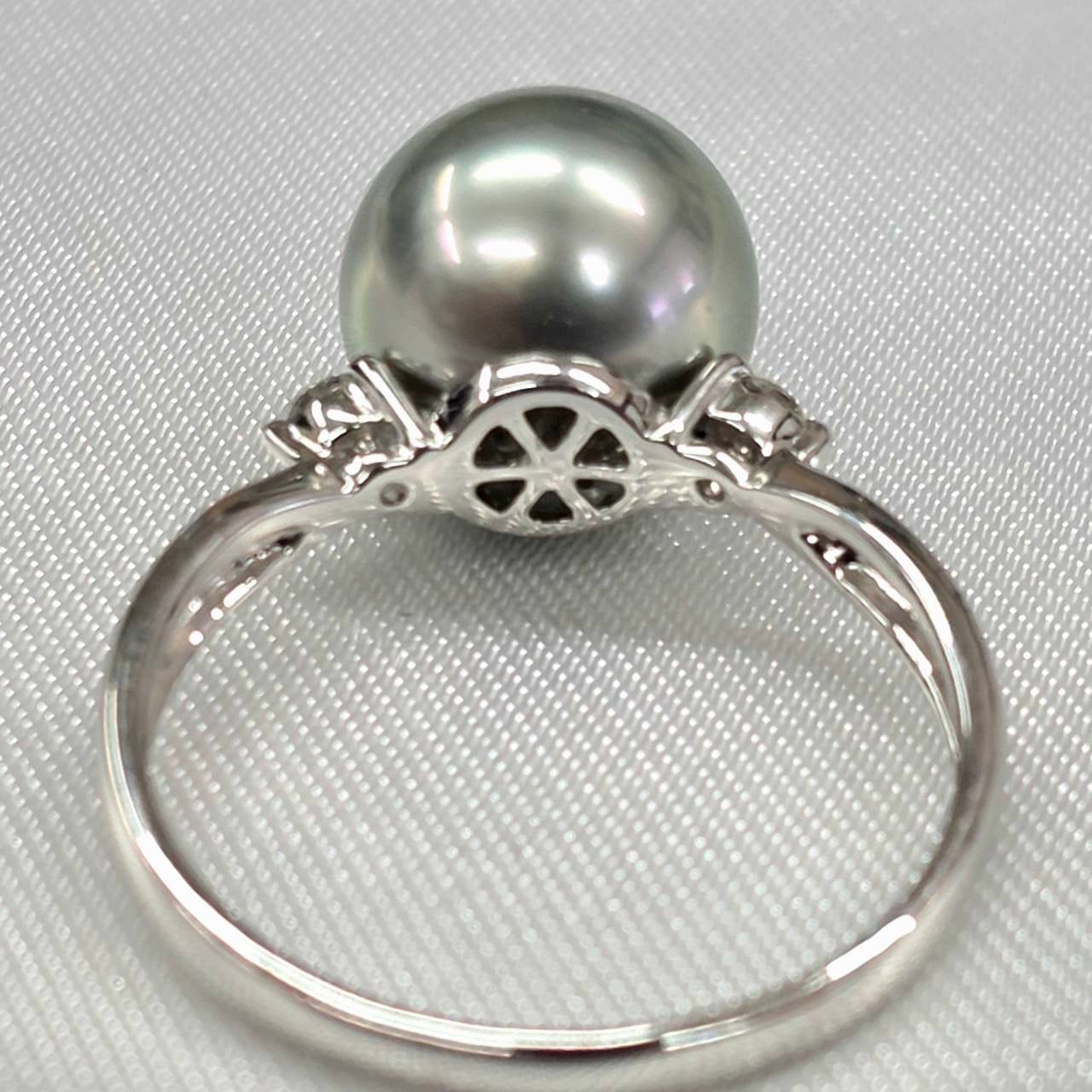 Pt900黒蝶パールリング 9.2mm 0.06ct 11号