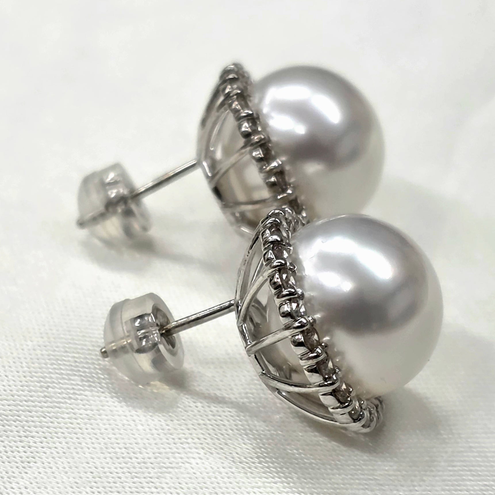 K18WG白蝶パールピアス 11.9mm 0.52ct×2