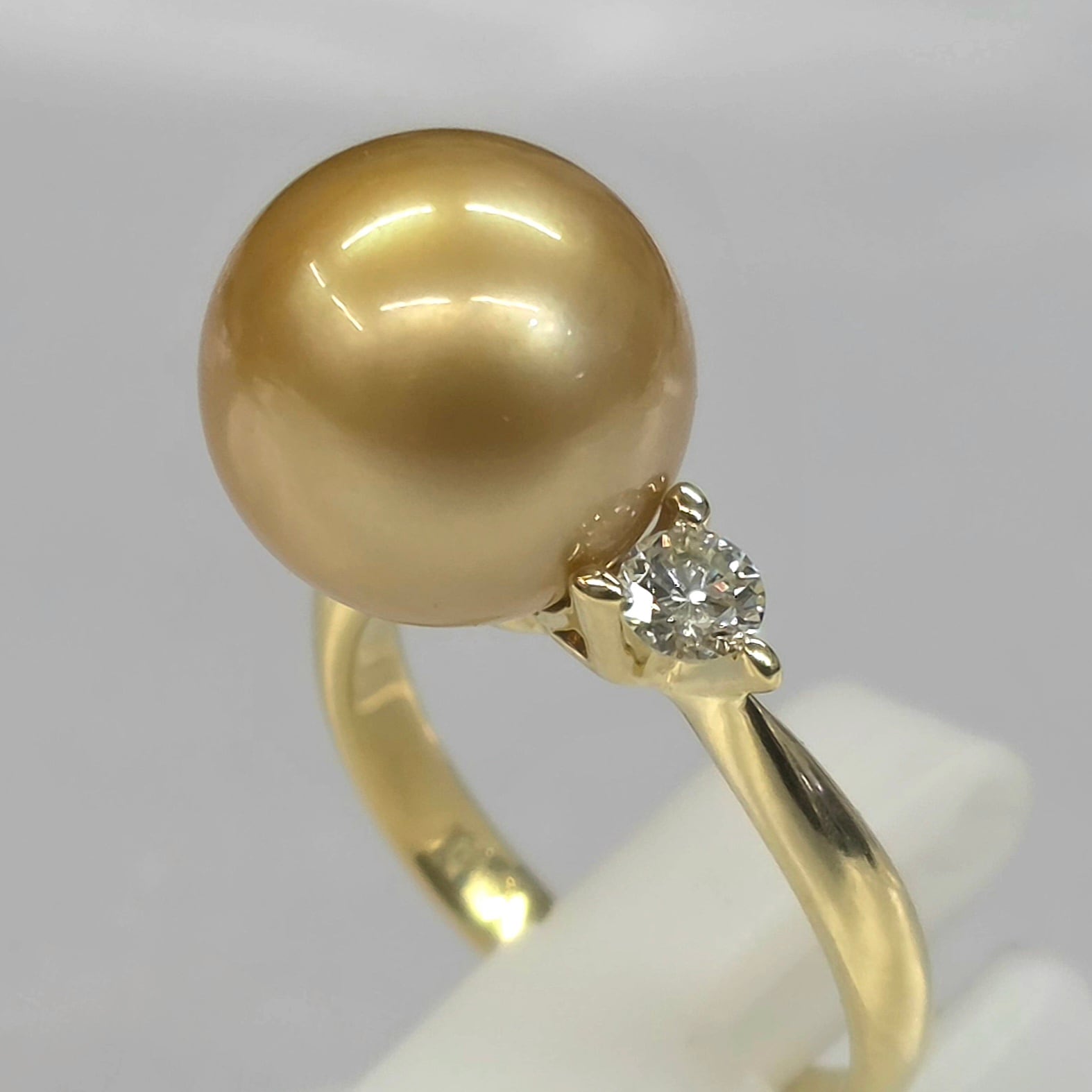 K18ゴールデンパールリング 11.7mm 0.33ct