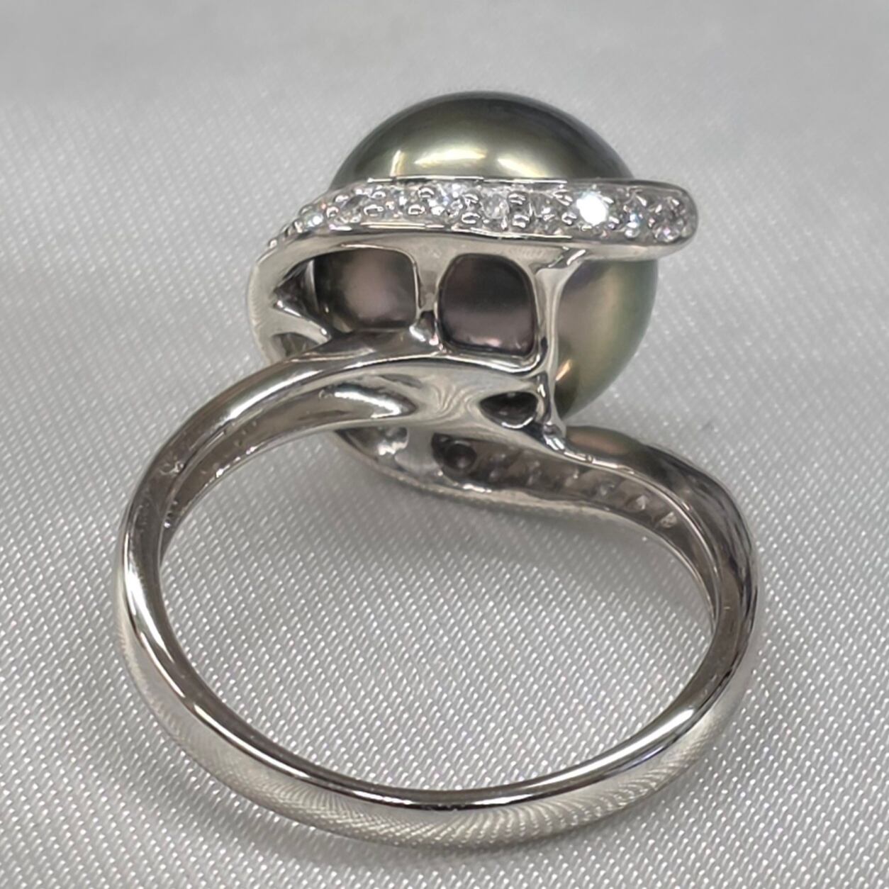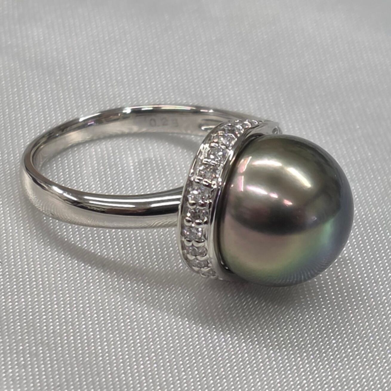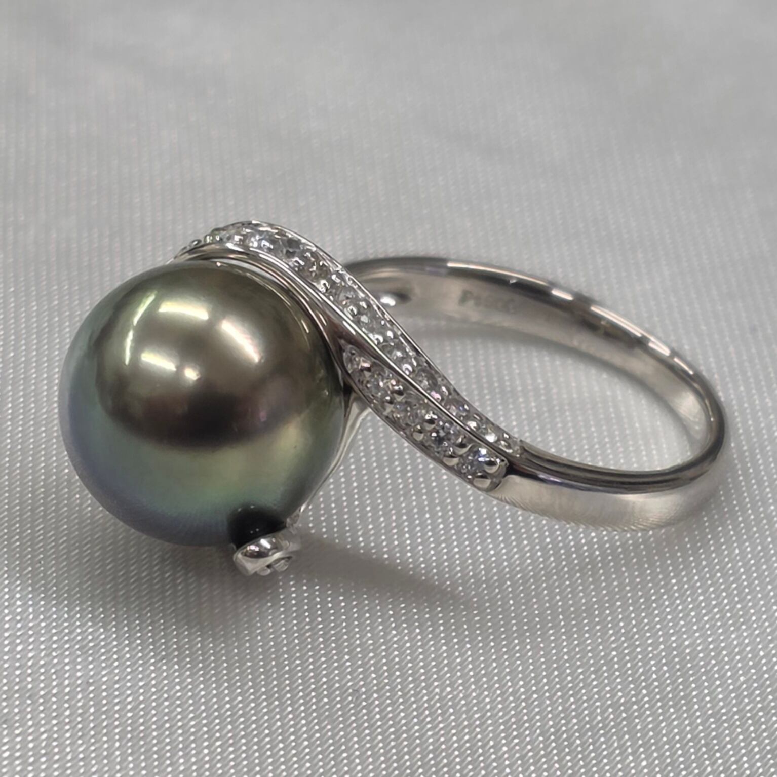 Pt900黒蝶パールリング 11.1mm 0.23ct ピーコック鑑別書付