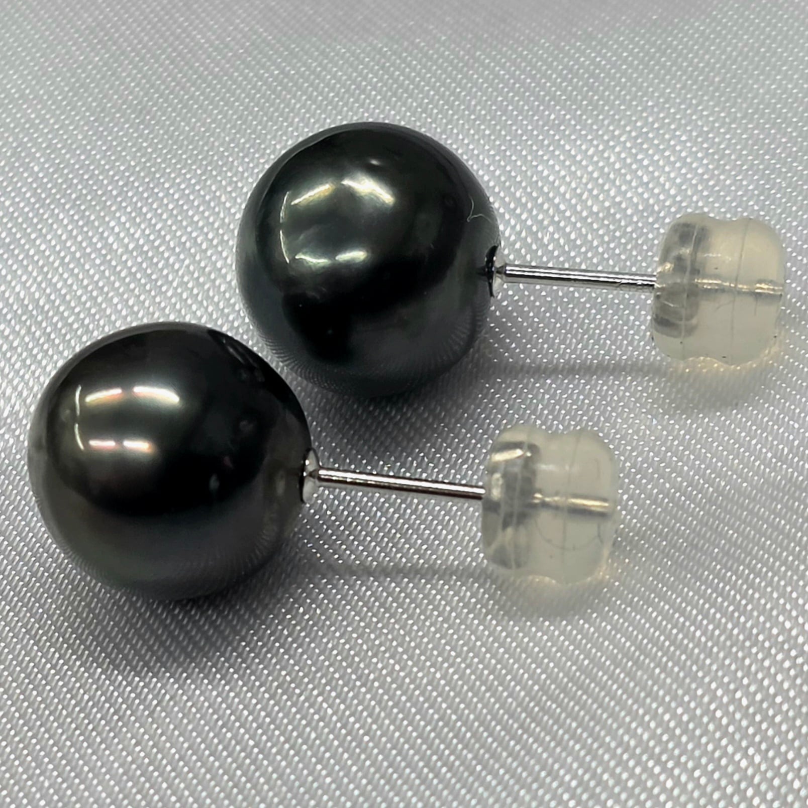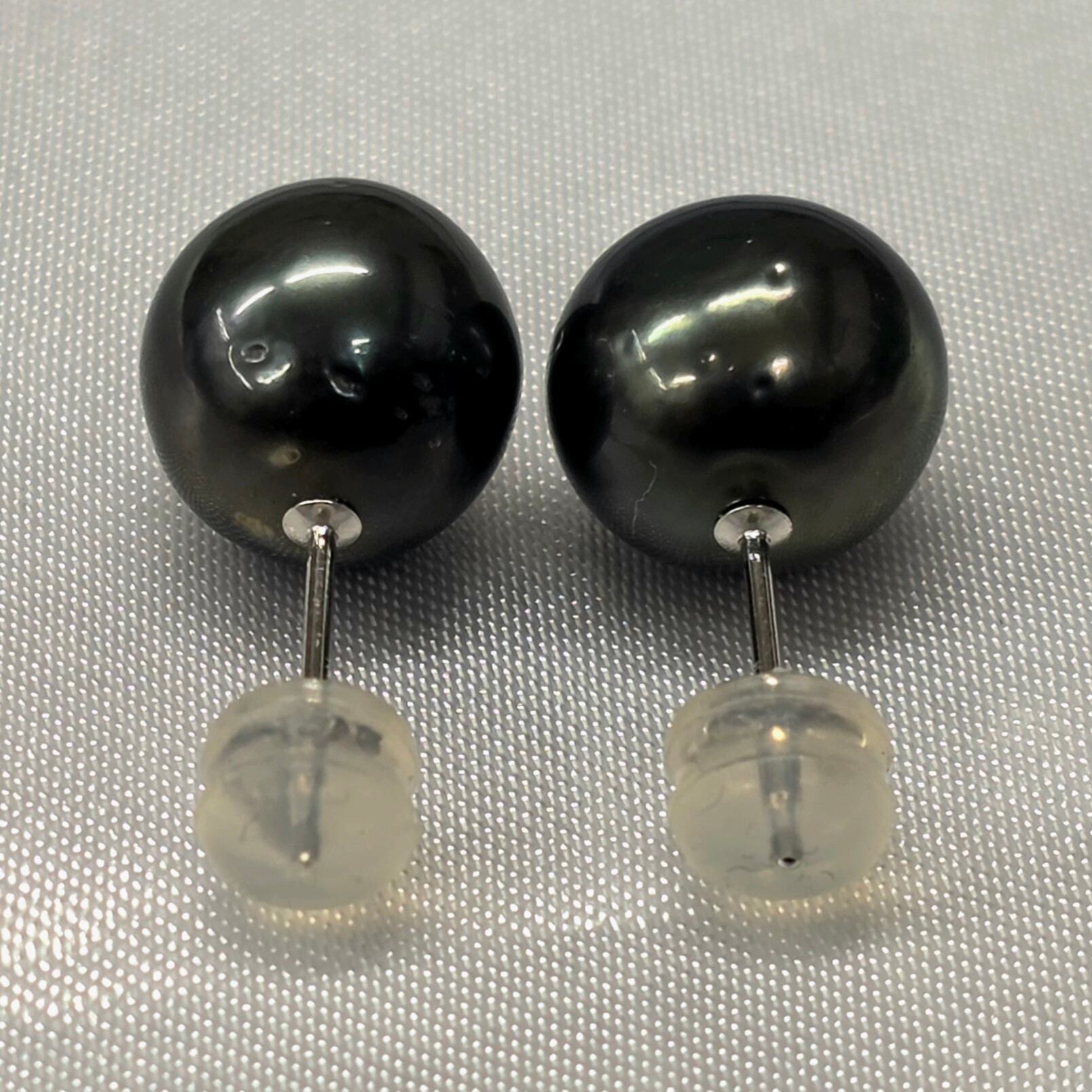 K18WG黒蝶パールピアス 9mm